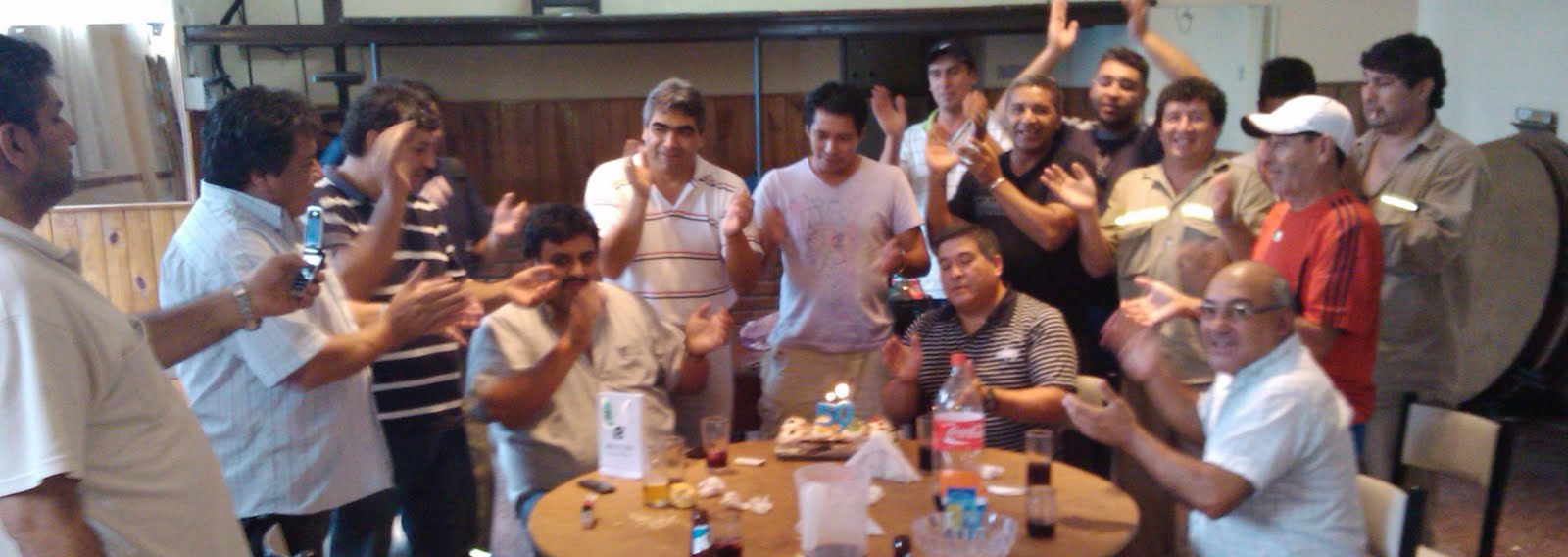 El pasado jueves 24 de febrero aprovechamos el almuerzo fraternal que realizamos todas las semanas en nuestro local, para festejar y agasajar al compañero Miguel Bazán por motivo de su cumpleaños numero 50. Al compañero Miguel, delegado de nuestra seccional y militante incondicional de nuestra institución, nuestra agrupación le regalo un colgante con un crucifijo de oro, como viene acostumbrando a regalar desde hace un tiempo a los compañeros que cumplen sus 50 años de vida y se lo agasajo con un excelente asado y el correspondiente brindis entre compañeros y amigos. De esta manera festeja nuestra confraternidad los cumpleaños de los compañeros.